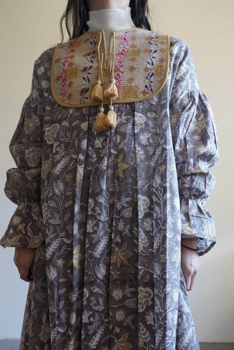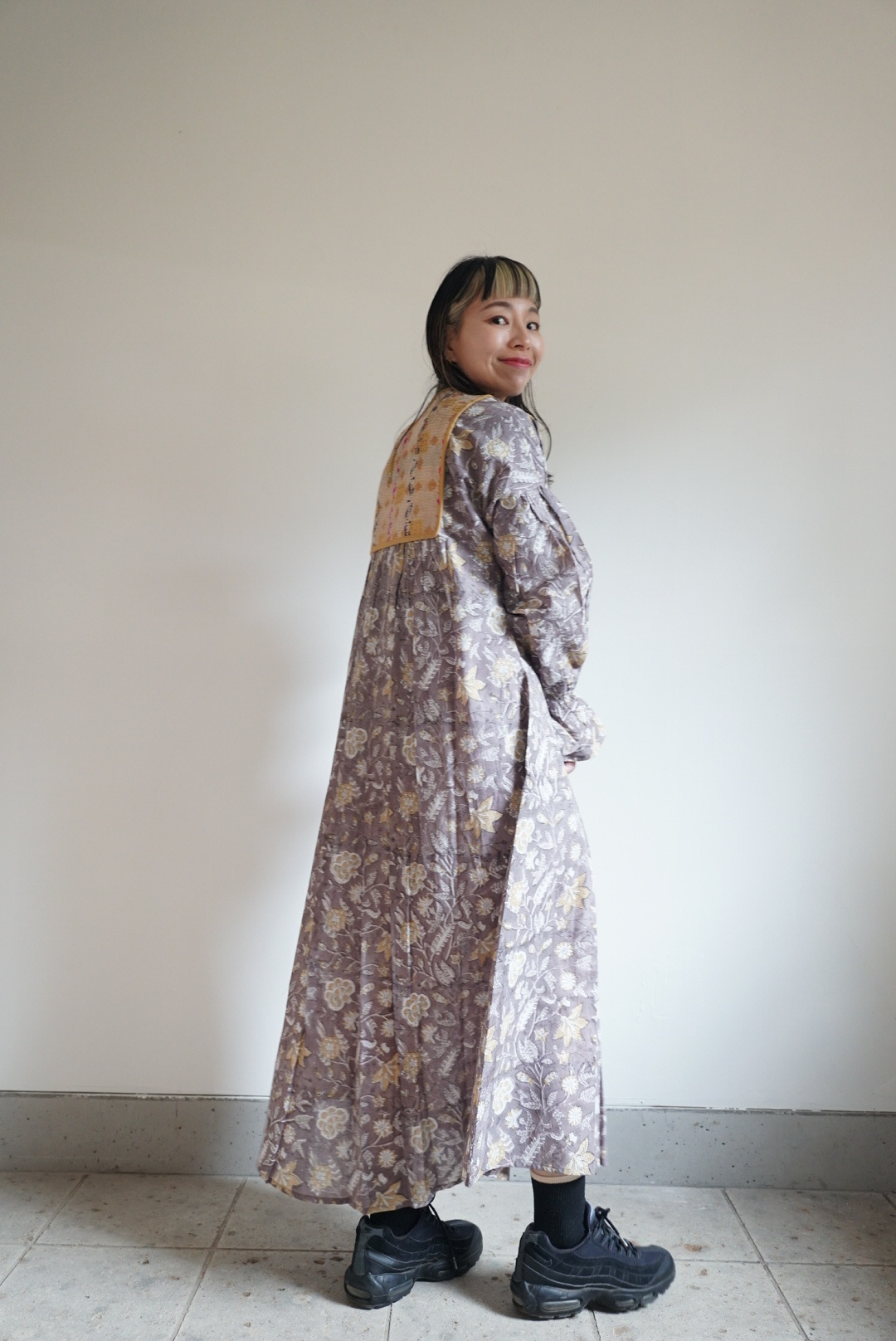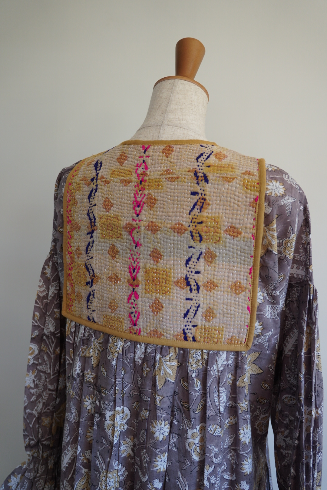 gray yellow kantha dress #2512001 | nioki with AMKUPi