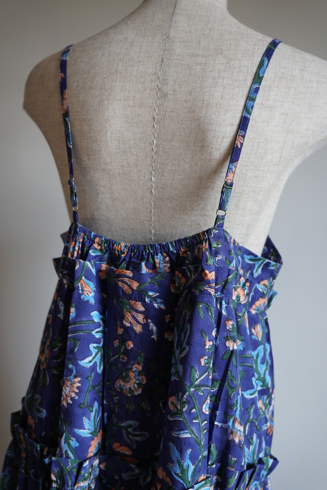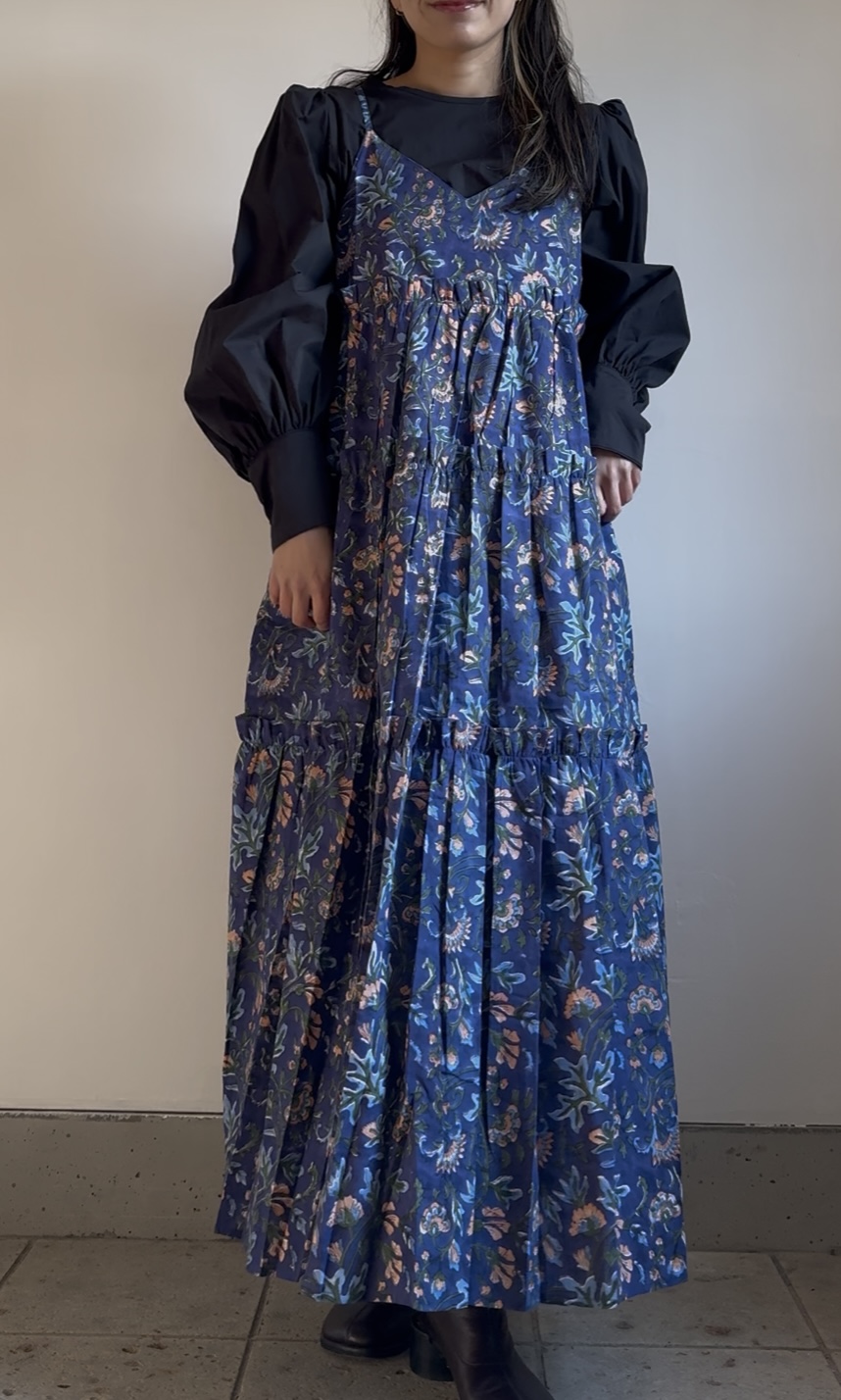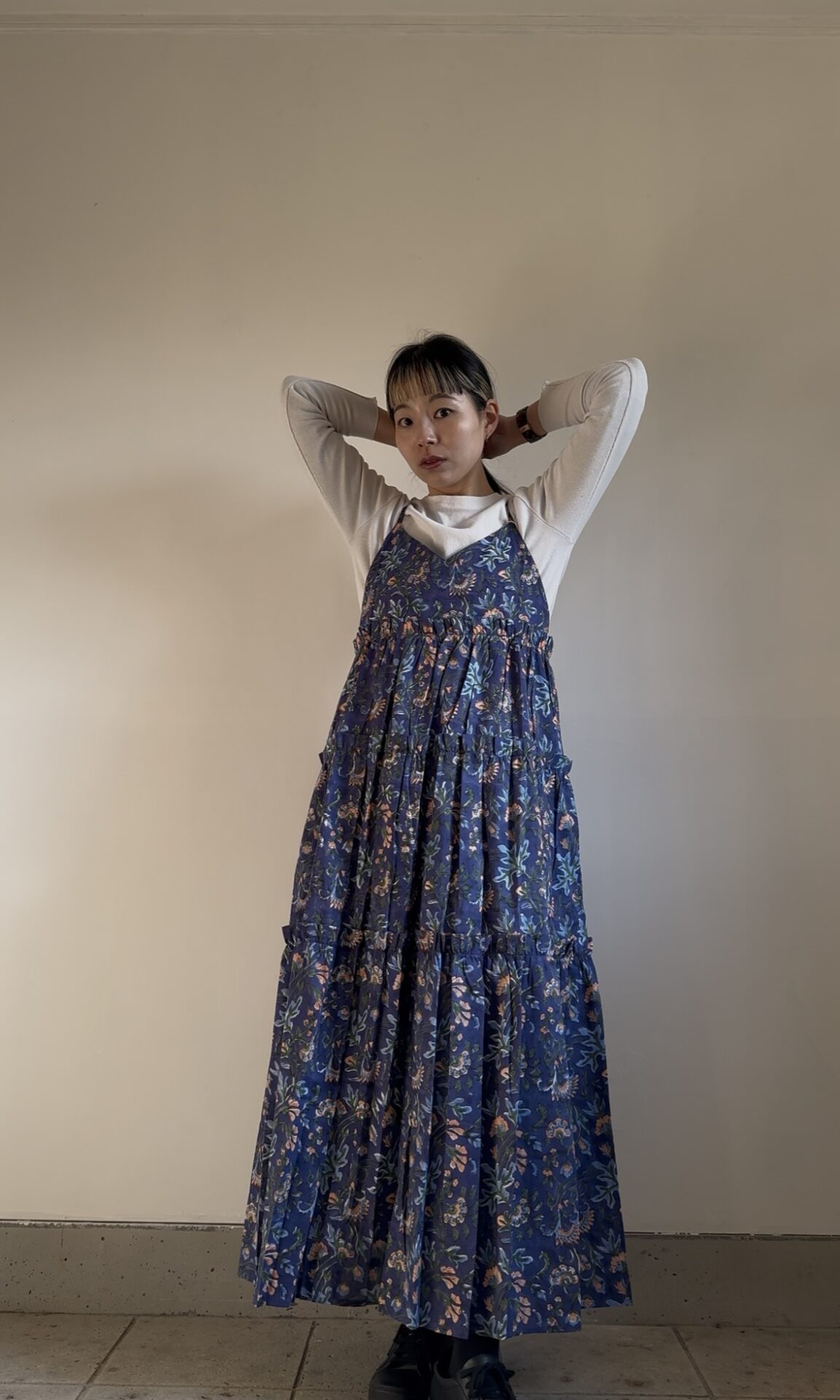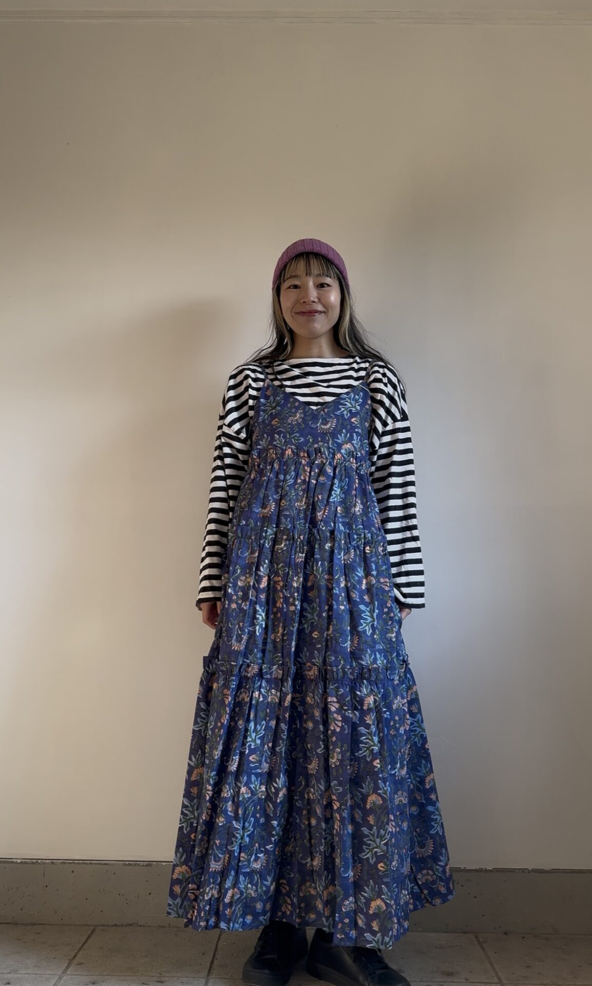 | サイズ | FREE 着丈121-131cm(肩紐アジャスターにて調整可能) 胸囲88-104cm(後ろにゴム入り) ・両脇にポケットあり ・裏地あり |