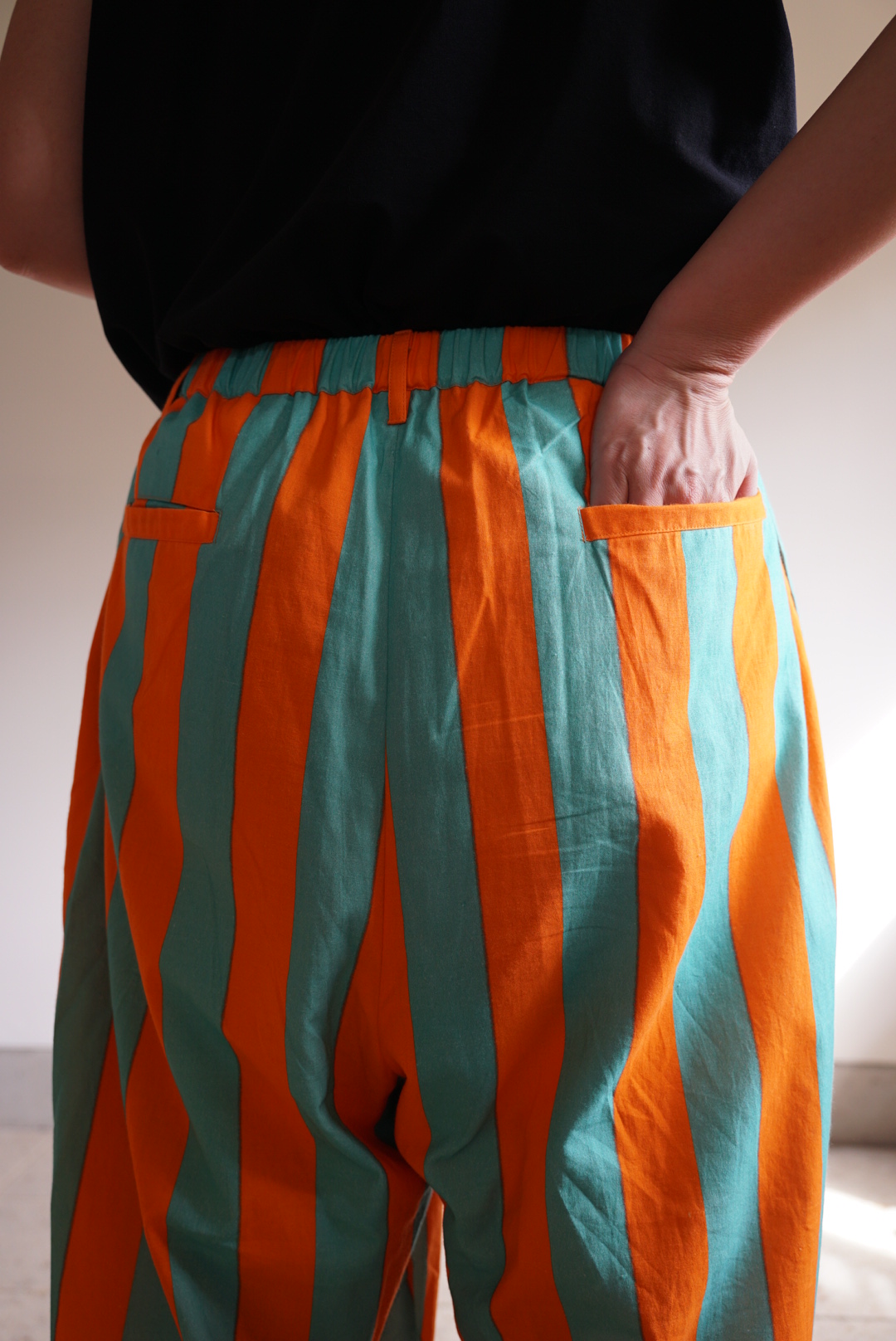 ■インド綿は柔らかく着心地の良さがありますが、非常にデリケートな素材です。着席時や、金属類等へのひっかけ、ポケットへの重量負荷などには十分ご注意ください。