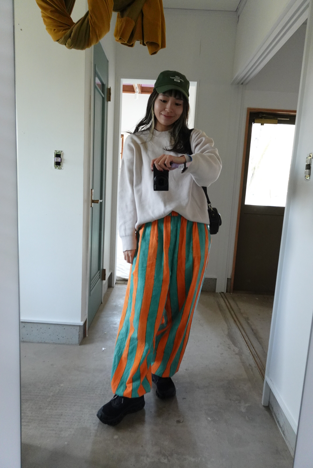 | サイズ | FREE 着丈98cm ウエスト周囲72~100cm(ウエストゴム、紐有り) ヒップ周囲116cm 股上41cm 股下63cm ・両脇、後ろにポケットあり ・裏地あり |