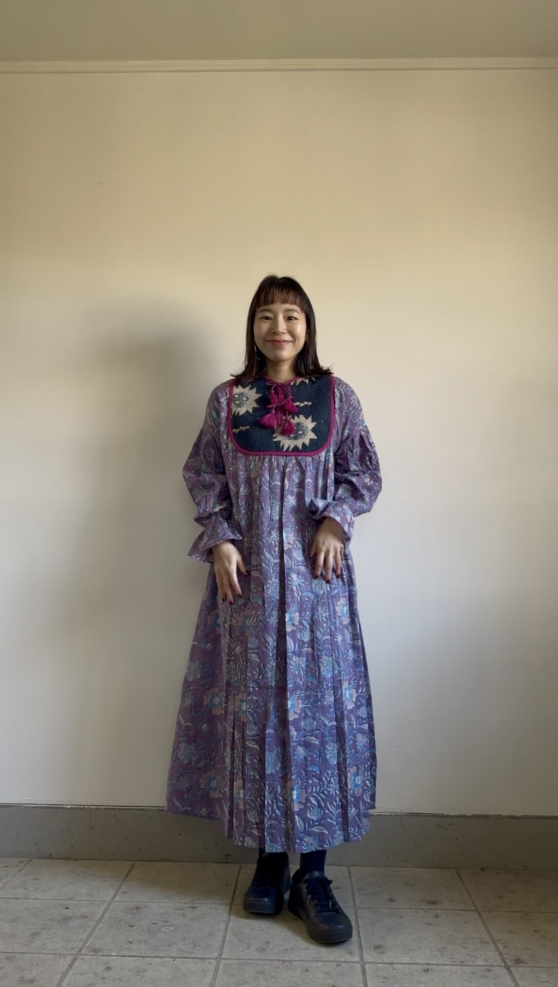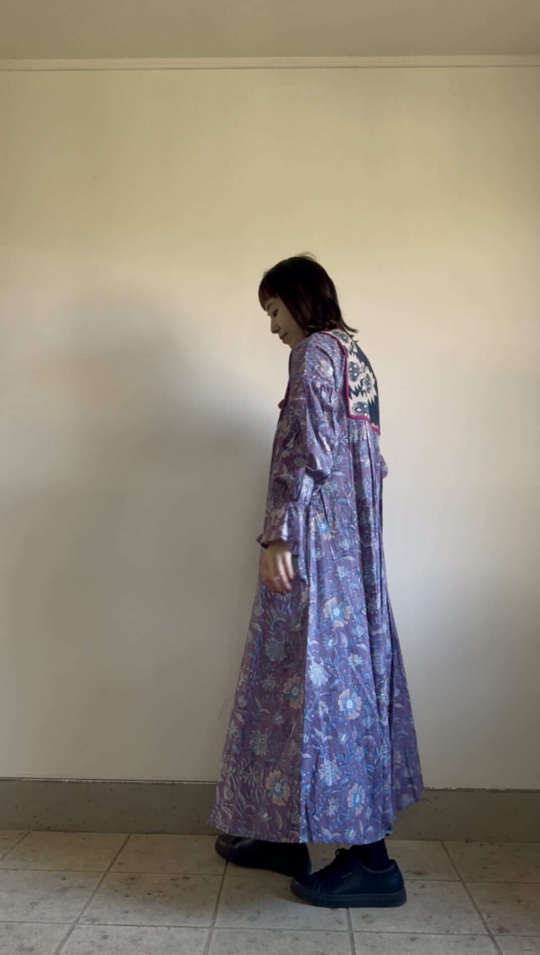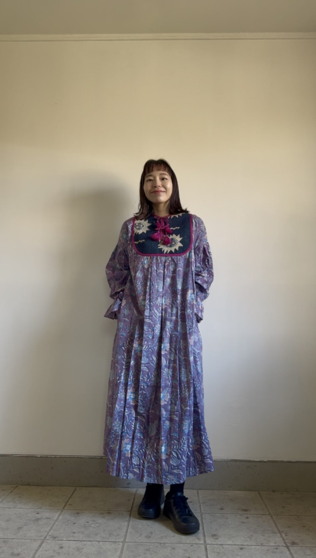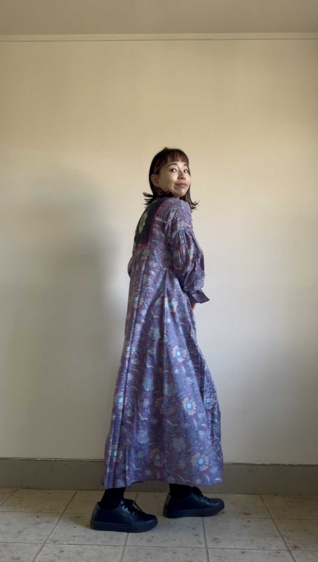 | サイズ | FREE 身幅57cm(周囲114cm) ウエスト78cm(周囲156cm) ゆき87cm 袖ぐり36cm 身丈 127cm (前身丈127cm / 後身丈131cm *中央にかけてシルエットが長くなっております) |