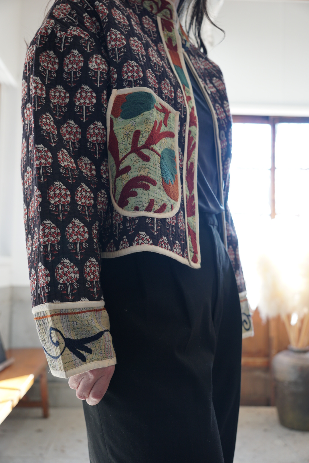 suzani black kantha jacket