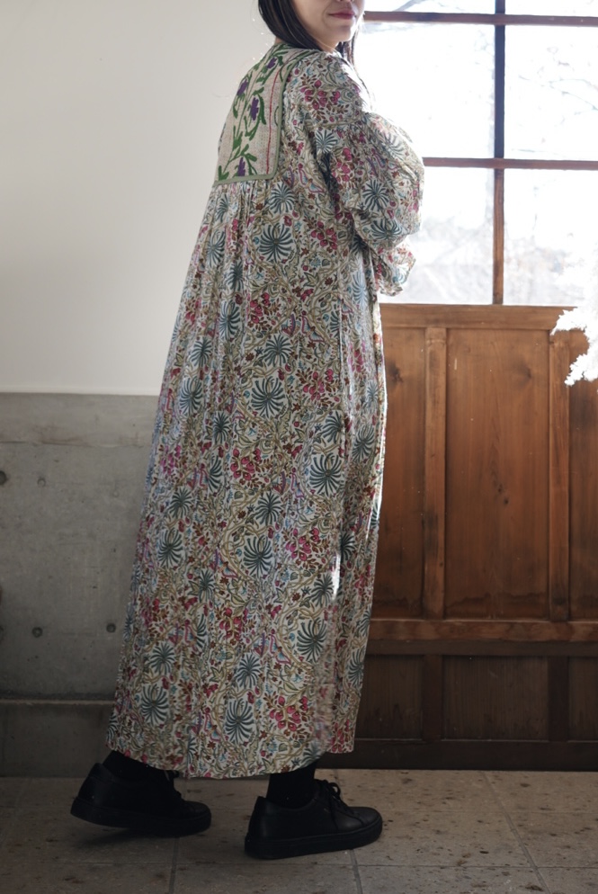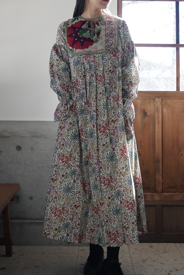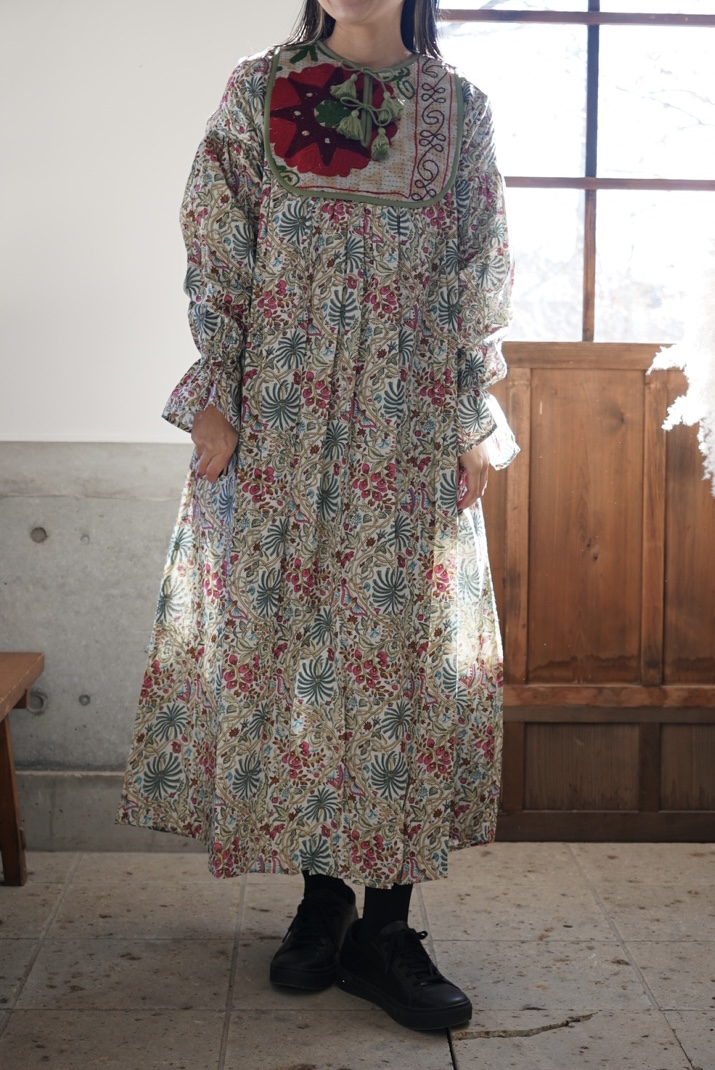 suzani green× pink kantha dress #2601001